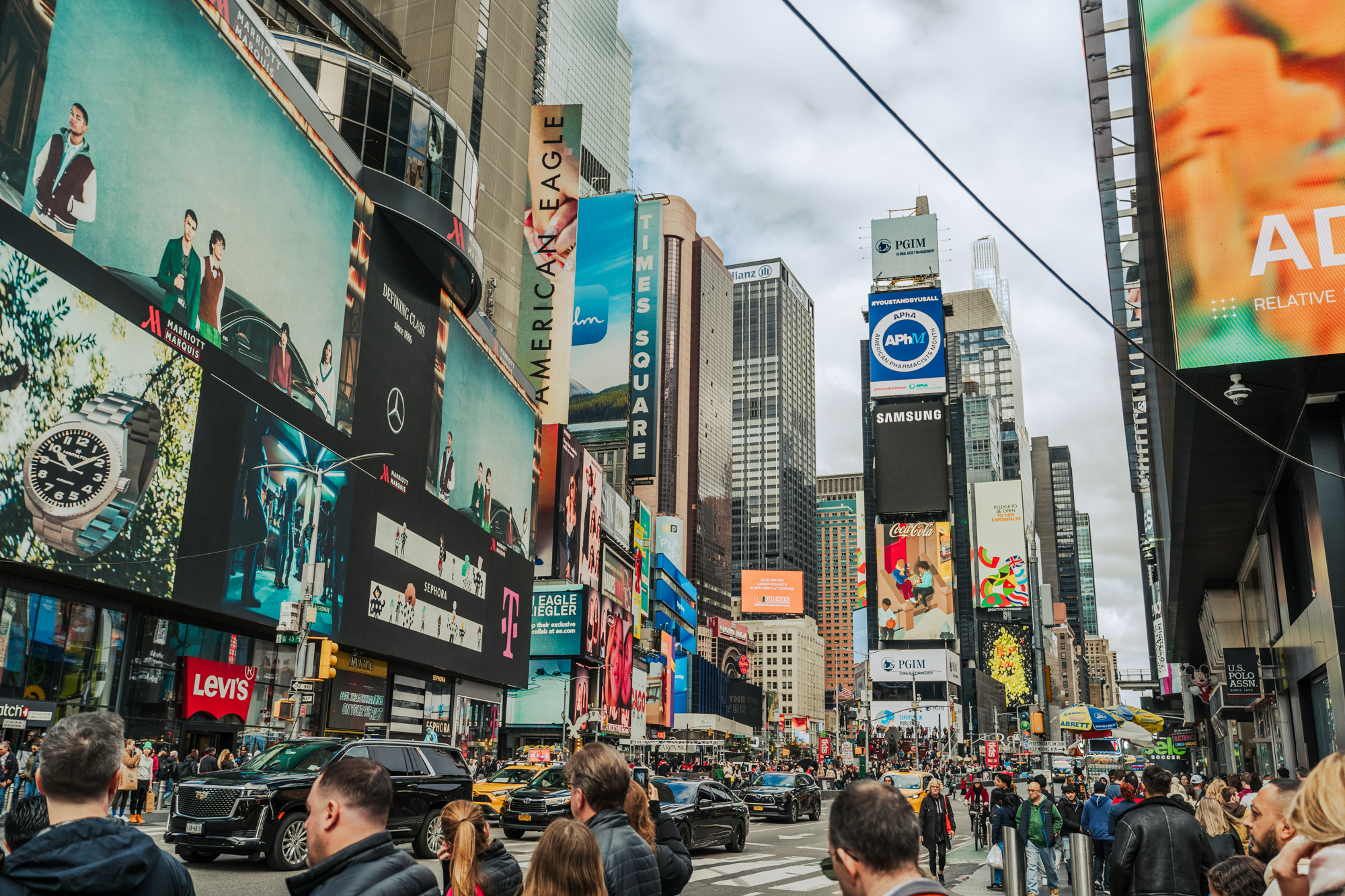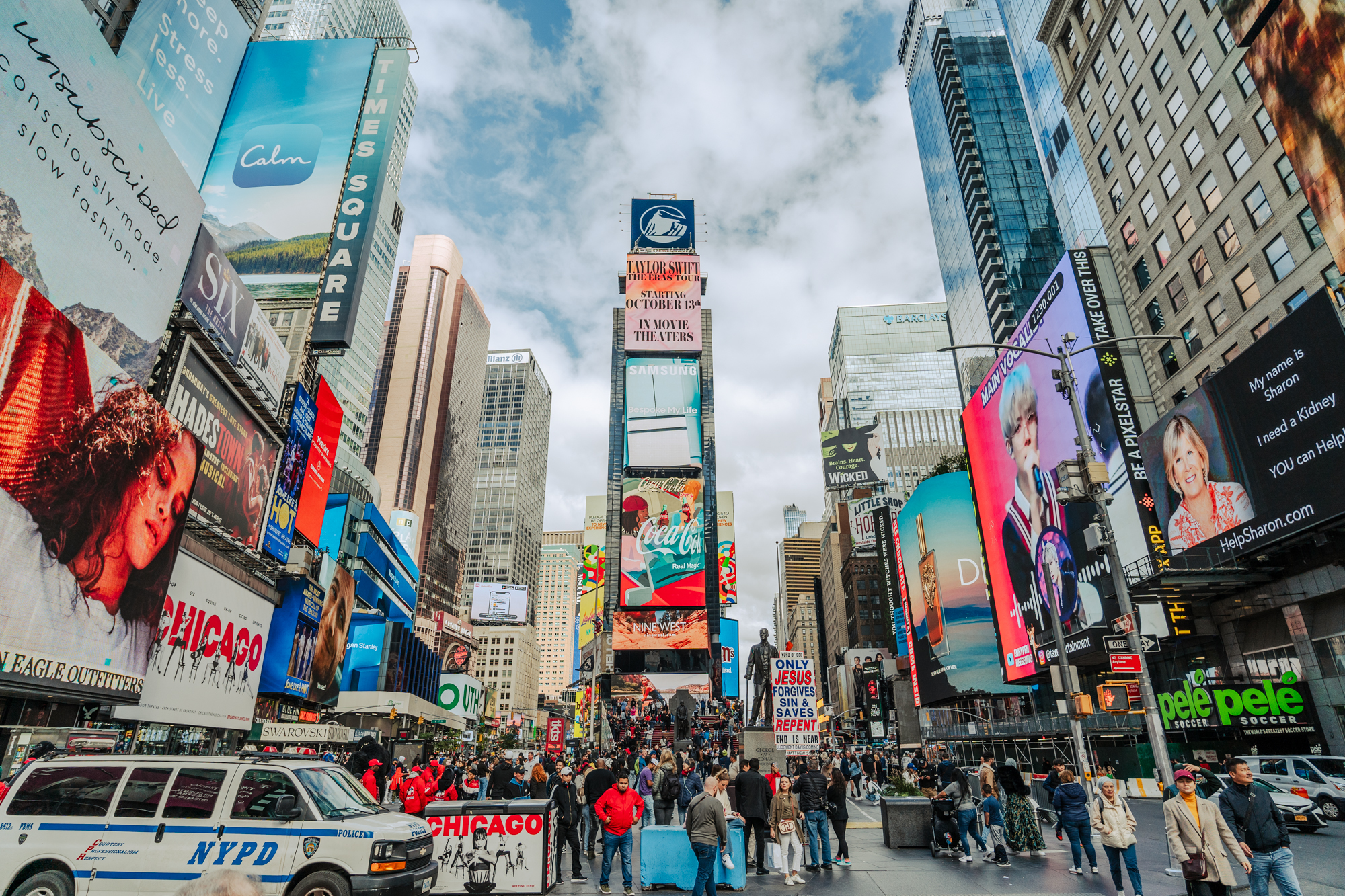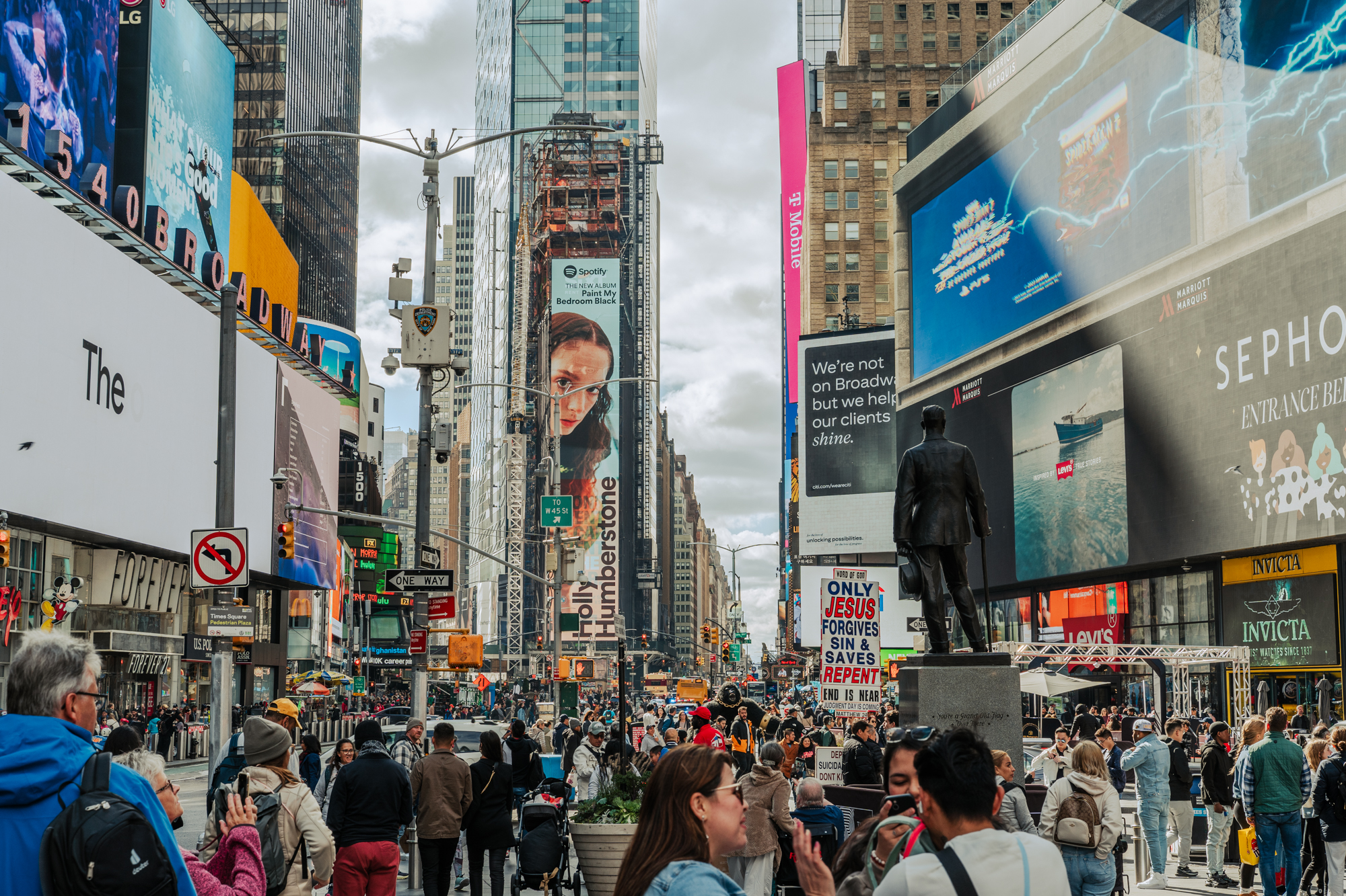 그리고 대망의 타임스퀘어로 이동했다. 이 날이 토요일인지라 사람도 무진장 많았고 날씨도 좋아서 구경하러 온 광각 관광객들로 가득했다. 타임스퀘어 가운데 위치한 건물에 삼성 광고가 자랑스럽게 표시되고 있었다. 아마 저 광고 비용이 수천억일 텐데 정말 역시 자본주의로 눌러내리는 클라