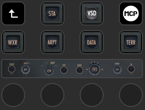 Each knob functions as a real aircraft knob when pressed (RST, CTR, TFC, STD).