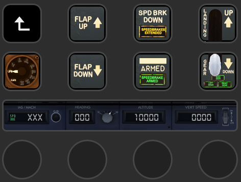 The config page allows you to set the flaps, landing gear, and speed brakes while controlling the MCP during the approach phase.